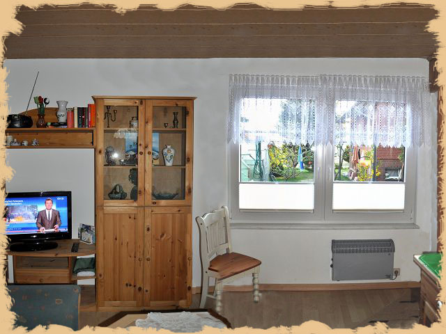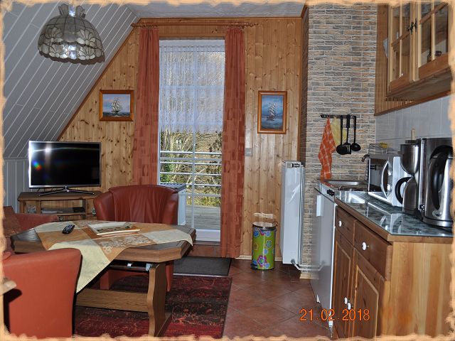 Wohnraum mit Miniküche, TV, Radio,