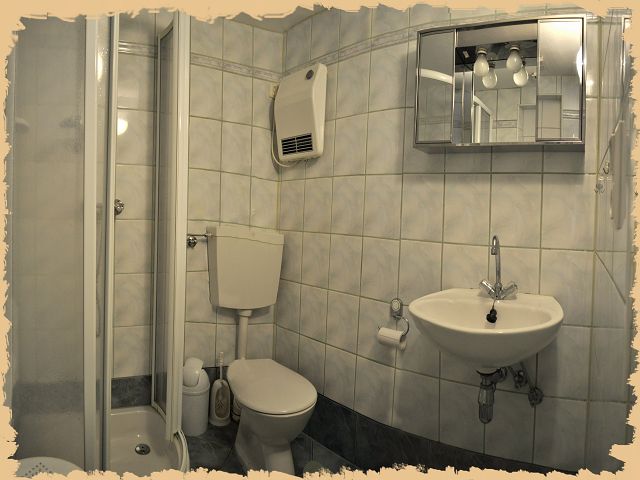 Schlafraum, kleine Dusche, Flur,